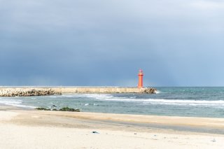 바다 앞에 빨간 등대 하나 딱 있고